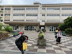 2日間の林間学校を終えた5年生の二小ちゃんたちが,学校に戻ってきました昨日の日中に降り続けた