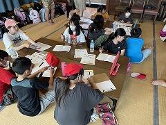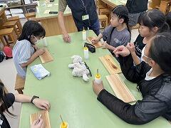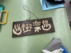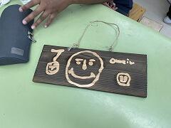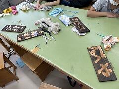 雨天でできなくなった午後のウォークラリーの代わりに,工房で杉板焼き体験を行いました。