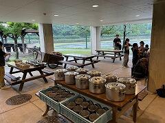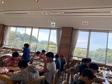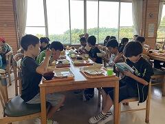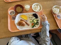 昨日は昼食がお弁当,夕食は野外炊飯だったため,施設の食堂を利用するのはこの朝食が初めてですバイキング形式で,ごはん・みそ汁・オムレツ・野菜サラダ・牛乳…と,バランスよく盛り付けて,みんなで美味しくいただきました