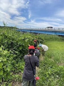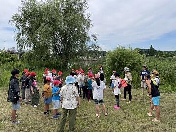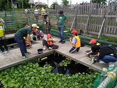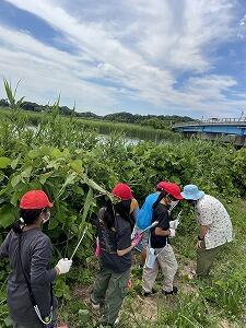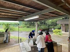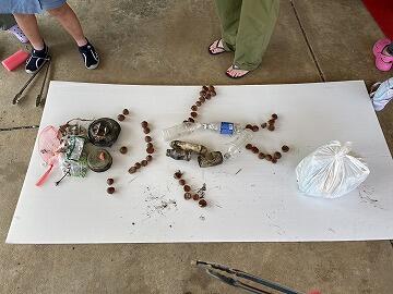 沼の周りのゴミ拾いをするチーム,回収したゴミを分別して分かったことを,ワークシートに記入しました。この後,ゴミを活用して創作活動を行います