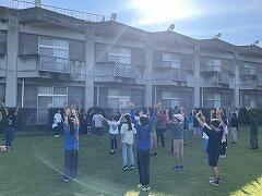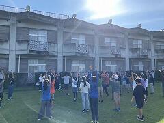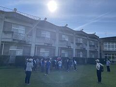 朝のつどいで元気にラジオ体操をして,みんなで起床後の体を整えました
