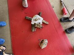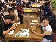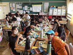 午前中の活動を終えてお腹もペコペコ,お昼ご飯です家で用意してもらったお弁当を,みんなでモリモリおいしくいただきました