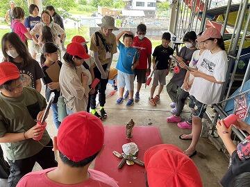 こちらは釣り体験チーム。思いのほか,魚がたくさん連れていて,子どもたちも楽しんでいます