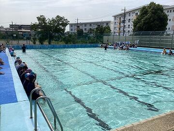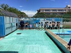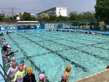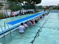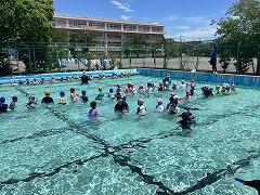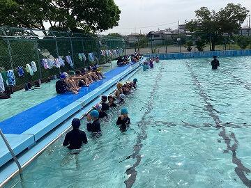水泳学習スタートから3日目,今日は3・4年生がプールに入りましたこれで全学年がプールに入っています