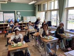 今日は5年生が林間学校代休のため,空いている5年1組の教室で1年生保護者を対象とした給食試食会が行われました希望された11名の保護者の皆さんが,二小ちゃんたちと同じように配膳して,今日の献立「いかのかりん揚げ・磯和え・豚汁・ごはん・牛乳・ひとくちレモンゼリー」を実際に食べてみました。久しぶりの給食に,保護者の皆さんも笑顔でした