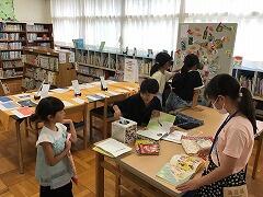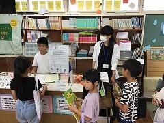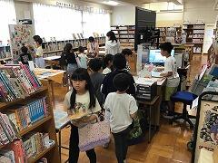 図書室は,貸し出しカウンターに列ができるぐらいの大盛況でした特製しおりがもらえる「図書じゃんけんくじ」も好評です