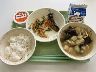 <いわしの生姜煮 ごま和え わかめのみそ汁 ごはん 牛乳 アセロラゼリー>