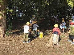 落ち葉の上を歩くと「サクッ,サクッ」と音がして,身近な秋を見たり聞いたり触ったりと,五感をフルに使って感じている1年生の二小ちゃんたちでした