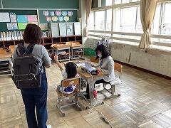 今日は午後から就学時健康診断で,来年の春に大津二小に入学する幼稚園・保育園・こども園の年長さんたちが健康診断にやってきました。体育館で受付を済ませてから,歯科・内科・聴力・視力検査を行い,最後に本校職員と親子面談を行いました