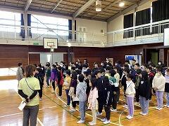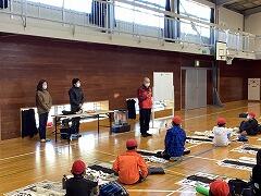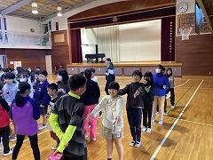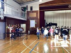 屋外だけではなく,屋内も極寒です体育館内の気温は4℃前後…冷蔵庫内のような寒さですが,3年生が体育サポートの授業に元気に参加して,スポーツクラブのコーチの指導を受けました