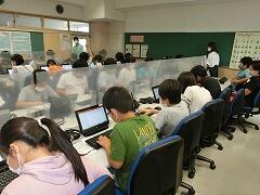 3年生がパソコンルームで学習しました。久しぶりのパソコン室!しかもパソコンとパソコンの間にはつい立があり…ちょっと緊張しながら,席に着きました。