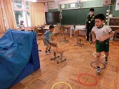 さくらんぼ・たんぽぽ組は,雨の日でもしっかりと身体を動かしていました。外が使えない日でも,室内でいろいろな運動を行っていました。