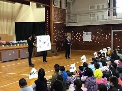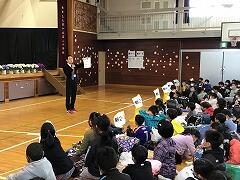 飯田校長先生からは「人の痛みがわかるために“心”を使おう」「人のよい所を見るために“目”を使おう」「人を他助けるために“手足”を使おう」という,思いやりを大切するための大事なお話がありました。