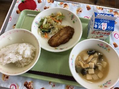 今日は,あじのあげに・たくわんあえ・じゃがいもとわかめのみそしる