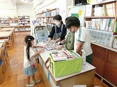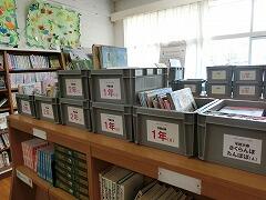 今までのように,休み時間に自由に本を借りることがまだできないので,図書委員が本を選んで各学級に学級で読む本を配っています。