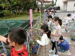 1年生がずっと育ててきたアサガオの種を集め,ほとんど枯れてしまったツルたちとさよならをしました。