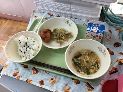 今日は,からあげとあぶらあげとごぼうとあえもの,