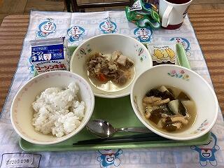 外は冷たい雨が降っていて寒かったので,温かい給食をお腹いっぱい食べて心も体もホッカホカになりました