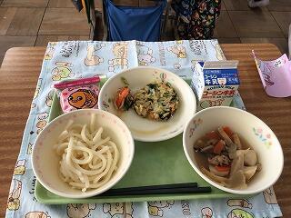 今日は,けんちんうどん・菜の花とさつまいものかきあげ・ツナあえ・