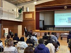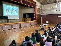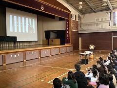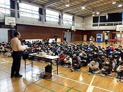 飯田校長先生からは,12月に実施した「学校生活アンケート」に書かれていた内容についてのお話があり,いじめをみんなでノックアウトしていく「ピンクシャツ運動」の紹介がありました。みんなで「いじめを許さない」という姿勢で,大津二小からいじめを無くしていきましょう