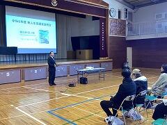 本日の10時より,体育館で令和6年度の新入生保護者説明会を行いました。飯田校長から学校概要や教育目標,続いて養護教諭から保健関係,現1年生学年主任から学習内容や持ち物など,教務主任からは教育課程についてそれぞれ説明がありました。