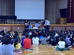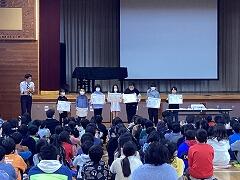 5校時に,全校集会を行いました。(来週2/6(火)朝にオンラインで実施予定でしたが,予定変更です)はじめに,冬休み中に取り組んだ書き初め作品で書星会賞に選ばれた児童への表彰がありました。