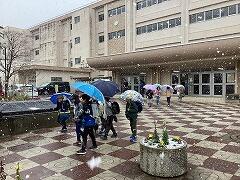 昼頃から雪が降り始めて,昼休みには外に出て舞い散る雪を楽しむ二小ちゃんたちでした下校後も雪は降り続け,大津ケ丘地区を白銀に染めていっています