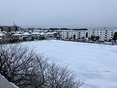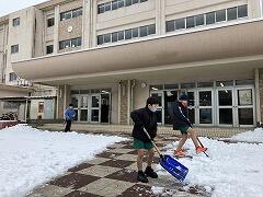 昨晩降り続けた雪は,大津二小の敷地内を真っ白に覆いました先生方で雪かきをしていると,有志の二小ちゃんたちが手伝ってくれました