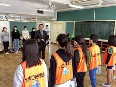 これまで頑張ってくれた現役員の5・6年生から一言ずつあいさつしてもらい,続いて新役員の4・5年生がこれからの抱負を述べました。児童会ビブスを引き継いだ後,飯田校長先生から任命状を手渡されました。よりよい大津二小にしていくために,新役員チームで力を合わせて頑張っていきましょう