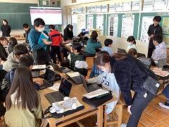 6年生のキャリア教育で,日鉄ソリューションズの皆さんをお迎えして出前授業を実施していただきました。パン屋さんを舞台に,プログラミングソフトを活用した在庫管理について,学習を深めました。