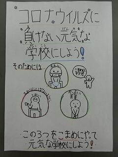 どのポスターもとてもとても素敵な作品であり,感染防止の大切さもしっかりと伝わります。そして,自分たちがこんな学校にしたい!!という気持ちもしっかりと伝わってきます。みんなの心にも届くといいなぁ。