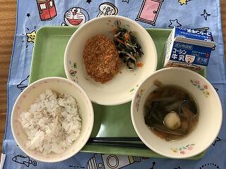 今日は,キャベツ入りメンチカツ・いそかあえ・だまこじるでした!