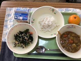 ポークカレー・ツナとわかめのサラダ・みかんでした!