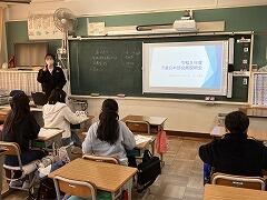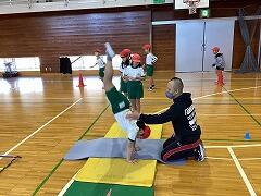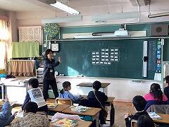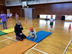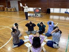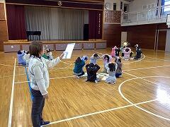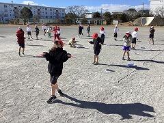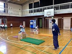屋外だけではなく,屋内も極寒です体育館内の気温は4℃前後…冷蔵庫内のような寒さですが,3年生が体育サポートの授業に元気に参加して,スポーツクラブのコーチの指導を受けました