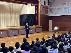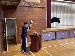 みんなで元気に校歌を歌った後,最後に大リーグで活躍中の大谷翔平投手から全国の小学校に贈られたグローブの紹介が教頭先生からありましたこのグローブで,是非ともキャッチボールをやりたいですね