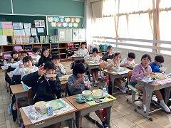 今年初の給食はスパゲティーボロネーゼでしたみんなで美味しくいただきました