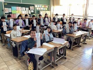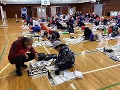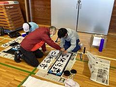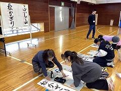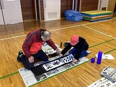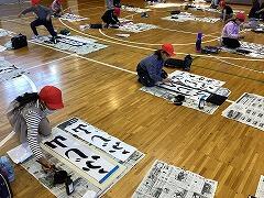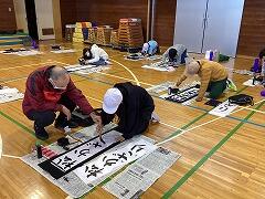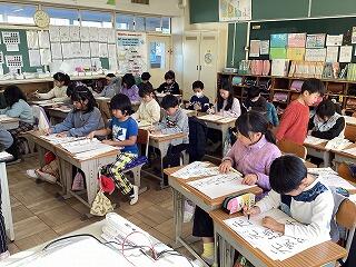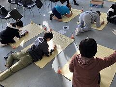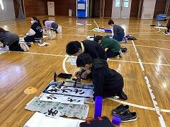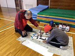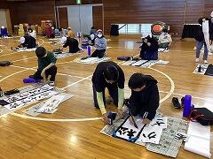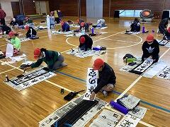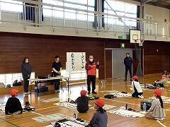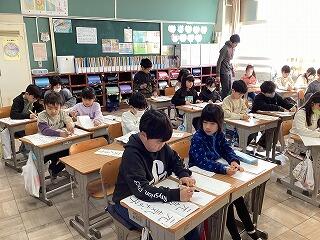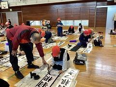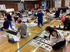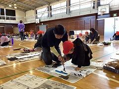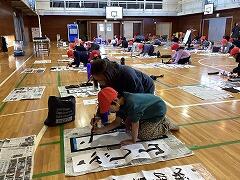 体育館で,5・6年生の校内席書会を実施しました。12月の練習会に引き続いて染谷先生ご夫妻にご指導をいただきました。それぞれ,冬休みに練習してきた成果を十分に発揮することができました