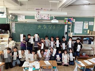 2年生も教室で書き初めを行いました。フェルトペンで力強く「元気な子」を書き上げました