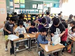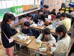 5校時には,2学期に生活科で作ったおもちゃを携えて,1年生の教室に出向いての交流会です手作りのおもちゃで1年生のみんなに楽しんでもらうことができました