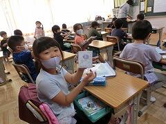 まずは,ランドセルや水筒の片づけ方を学習しました。持ってきた書類を先生に提出したり,連絡帳にお手紙を貼ったりしました。