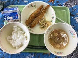 今日は,ししゃもごまフライ・蒸し鶏ときゅうりのあえもの・豚汁でした!
