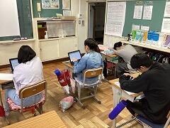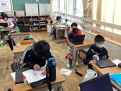 1時間目,6年生が真剣な顔つきでChromebookと向き合っています。千葉県の学力向上施策の一環で,「ちばっ子学びの未来デザインシート」の問題に取り組んでいました。火曜日は5年生,水曜日は4年生,木曜日は3年生で実施を予定しています