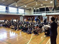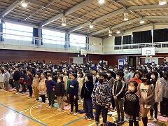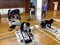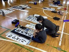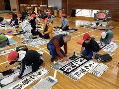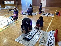 体育館で,5・6年生の書き初め練習会を実施しました。講師は,毎年ご指導をいただいている染谷先生ご夫妻です。それぞれ個別に朱を入れてくださったので,冬休みの練習に生かしていきましょう