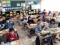 2学期最後の給食は,二小ちゃんたちも大好きなカレーライスですみんなで美味しくいただきました