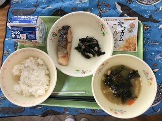 今日は,やきししゃも(2本)・いそかあえ・あつあげのピリからいため・ヨーグルトレーズン