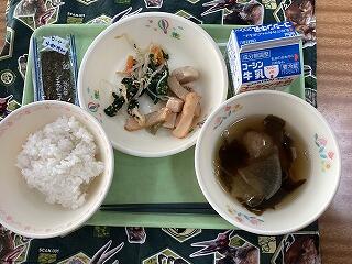 今日は,いかと里芋の煮物・ちぐさあえ・銚子産いわしのつみれじる・あじつけのり