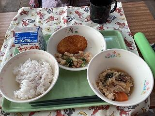 今日は,コロッケ・はなやさいの玉ねぎソースあえ・ぶたすきやきでした!