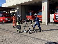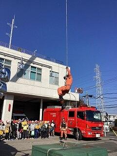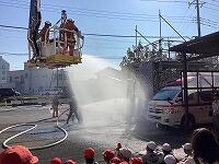 3年生の社会科「火事からくらしを守る」の学習をより深めるため,沼南消防署へ見学に行ってきましたはしご車やポンプ車,救急車などの消防車両見学から始まり,救助活動で使用する用具のデモンストレーションや消防服着用体験,庁舎内見学,要救助者の救護活動,放水作業の見学など,盛りだくさんの内容で大変勉強になりました