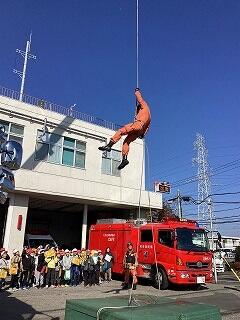 20m上空からのロープでの降下訓練では,大きな拍手が沸き起こりました