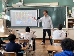 いよいよ今日から12月です外国語のシルバ先生は頭にサンタ帽+真っ赤なベスト着用で,早くもサンタクロース感を演出されていました